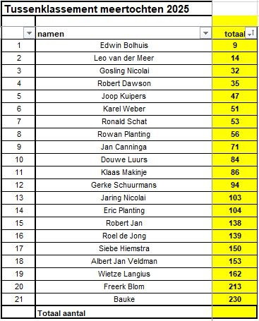 Tussenklassement meertochten 2025 na 5 wedstrijden